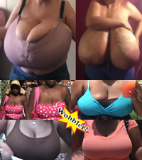 This week with another clip of the crazy lass on the left sucking gallons of milk from her huge jugs and aureolae like mad! Absolutely stunning! Asian of the week is balloon-boobed (natural!) Pui (top right) grabbed in several tops! Brand new sightings from Spain: the lass on the left wearing no bra showing extreme wobbling - and the one on the right, pimped from tip to toe! From Spain also a compilation of girls whopping down stairs, and large, re-edited combos from Miami and London! |