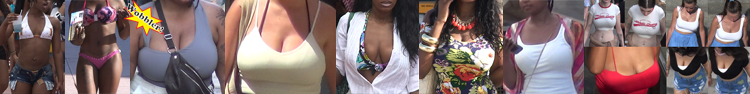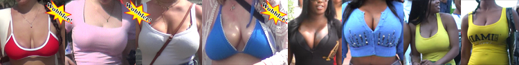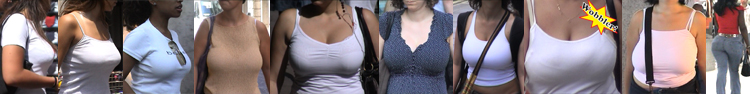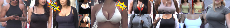 This week more Asian combo-clips showing the busty cutie on the left grabbed in two seethrough-tops, and skinny but superbly stacked Nom on the right, molested in several sexy and tight tit-tops! This week again fantastic sighting-compilations from Miami including the ballooning stunner on the right and one busty lass wearing not less than four tops in one clip! A gorgeous deep and wobbling black cleavage from London and new summer-clips from Spain, including topless torpedoes from the beach! |
